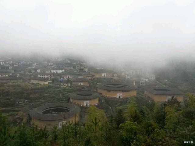 大概50分钟车程就可以到达初溪土楼群, 可以先上外面的观景台观景,但今天大雾, 等到我们午后出来上去才大雾才渐渐散开。 中午在土楼里面的饭馆吃, 走地鸡90一只, 老板娘说是自家养的, 要养10个月才可以吃, 但按这里的客流量这根本不可能是自家养的鸡了。