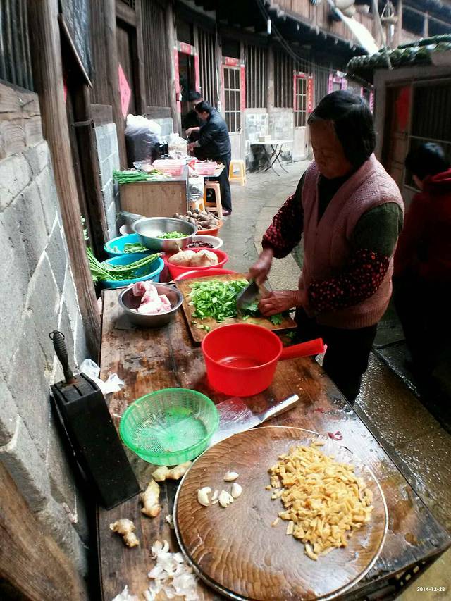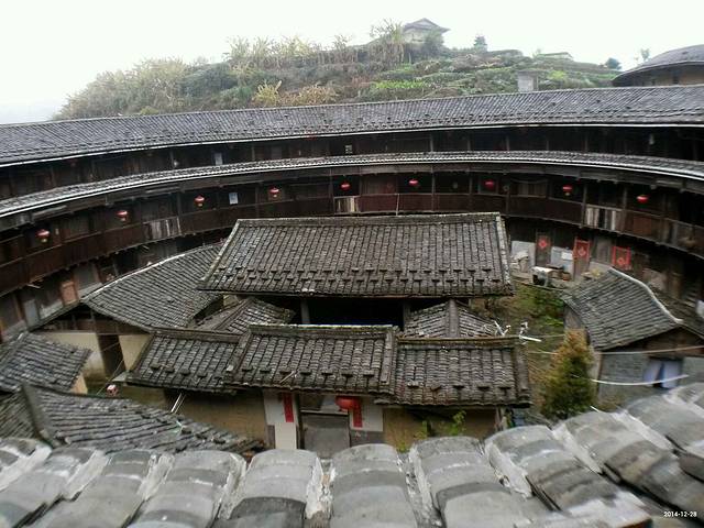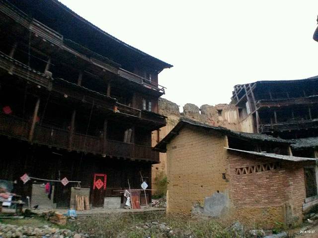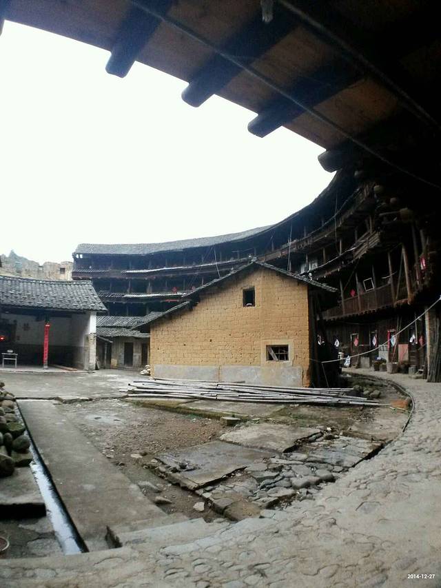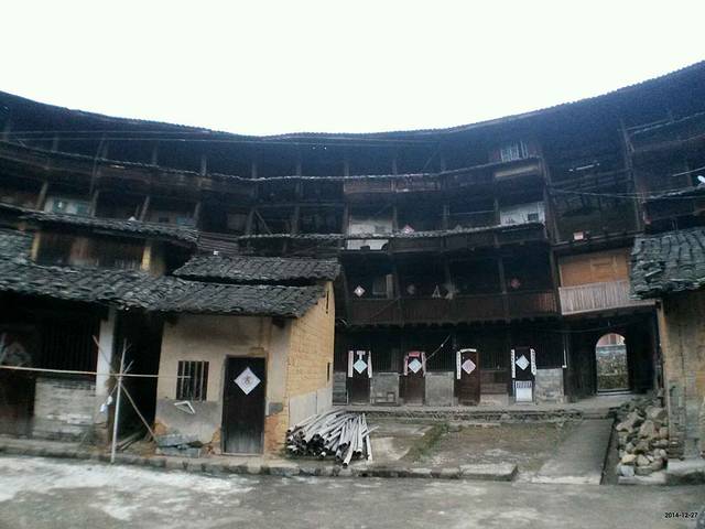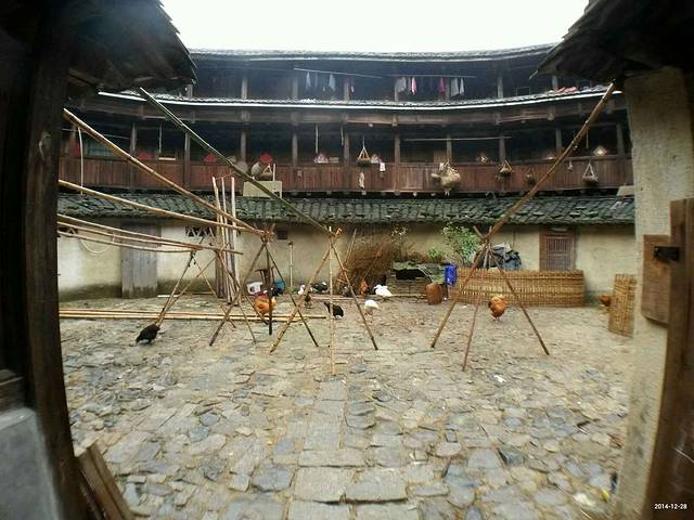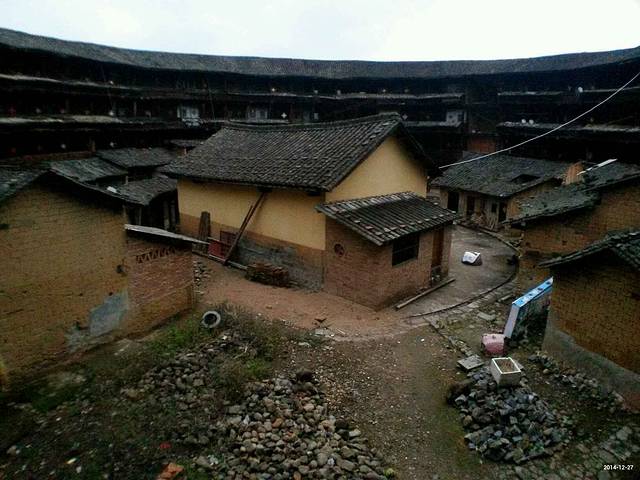 老板带我们到他家的土楼里,应为没列入景点所有不收费而且还有老人在里面住, 由于住宿环境实在不好, 很多家庭也准备搬出去了。老板说等售票处的人下班后可以到土楼民族文化村里看看, 但他们下班后天已经入黑了,根本什么都看不了。