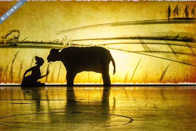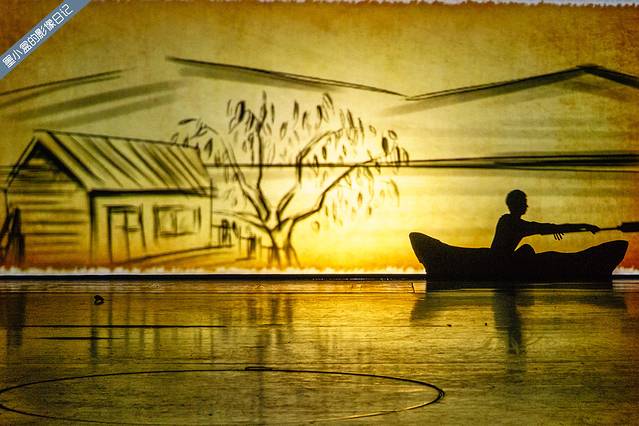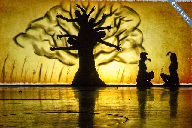 刚刚坐下来,剧院里的灯光暗下来,小丑上台来先博众人一笑(花痴的说一句,谢幕后看到小丑好帅!),音乐响起,幕布渐渐打开,出现在眼前的是一面屏障,随即目光就已经被屏障那一侧的演绎完全吸引了,一幅幅东北人家生活的场面徐徐展开,光影之间的变换,里面变成一颗树,里面变成一头牛,或者一只船。
