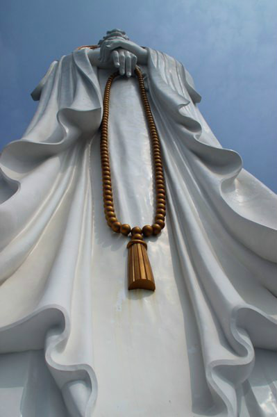 155元/人,南山寺第一个自费项目是平安符50元/人(给没来南山寺的亲朋好友买,要知道属相哦),第二个是抱佛脚,88元/人,就是坐电梯上去在108朵莲花上面,拥抱一下三面观音的脚,在广场只能看到观音的一面,在南山寺的海边可以看到观音的两面