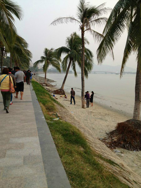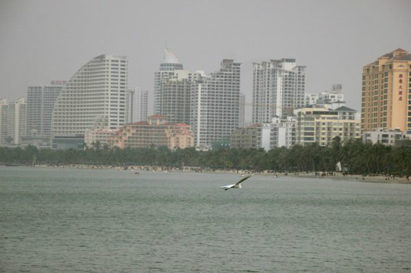 三亚湾在修路,海边有点脏,三亚湾海边就是椰树长廊,看着灰蒙蒙的天空,望着风情的椰子树,还是别有一番味道的。