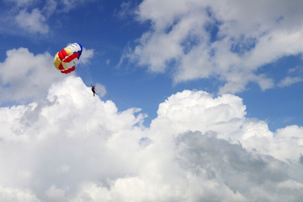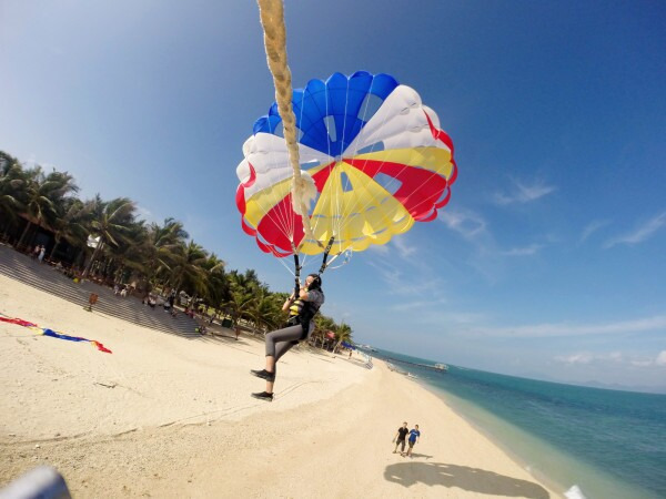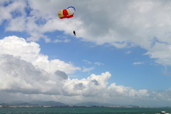 上岛后,趁着游客还不是很多的时候在导游那里买了290元的托伞项目,好期待~~
