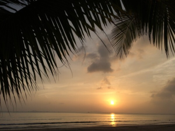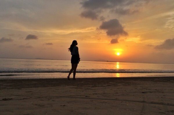 下午比较晒,我一直沿着椰子树下走的,没有在沙滩上走,终于瞄准一块比较适合看日落的地方我就坐在沙滩上休息啦。