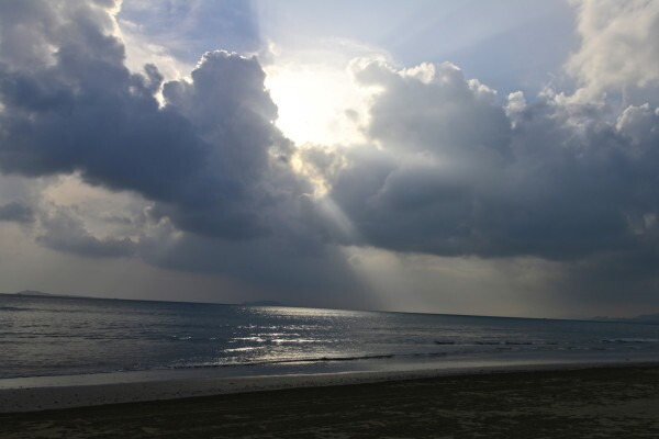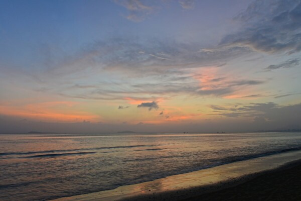 抵达大东海沙滩~今天是多云天气,没有太阳很凉快。