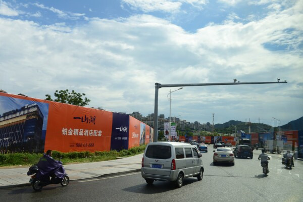 然后又往前走了一个路口终于看到了15路,赶紧上了车,问了一下售票员,是去亚龙湾方向没有坐反,我就安心地找了个位置坐下来,带上耳机,掏出相机,准备欣赏沿途的风景啦。以下是坐在公交上拍的。