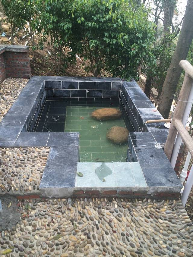 每套小院都配有 温泉池,