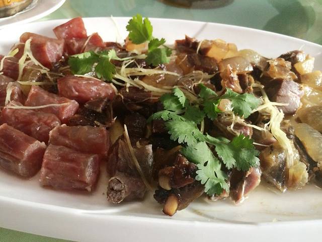 山下九龙湾山庄,有景区自养的野山羊,烤全羊大餐。黄金烤全羊,外黄皮脆。肉嫩滑可口,撒上孜然,香味扑面而来,让人口雌生津,欲罢不能啊!!
