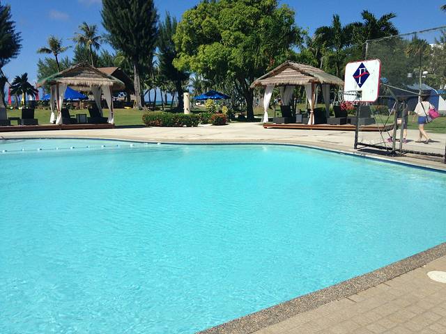 酒店的泳池,除了游泳以外还可以投个篮,打个水上排球什么的。