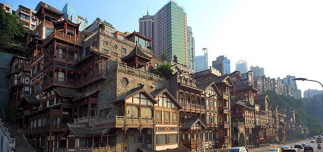 从解放碑步行至洪崖洞只需要20分钟的路程,洪崖洞是一个建筑群,不需要门票费用,里面的特色小吃也很多哟。