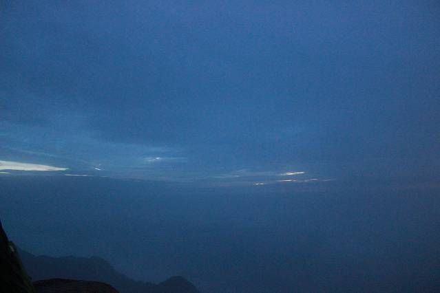 开始登山时掩饰不住内心的雀跃,在路边买了登山杖、手电灯、雨衣,一切准备就绪,第一次在夜里登山,一边走,一边东看细看,虽然晚上什么也看不清楚,唯能看到星星点灯的手电筒和听见一路同行登山的友人,有情侣、有成群结队的友人、很是欢乐,他们在分享着自己的故事,我在旁偷听着,发现此时的偷听也是一件乐事!