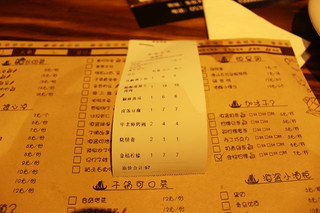 足矣体现山东人的热情呀。因为正值吃饭点,上菜有点慢,于是便欣赏边等待。餐厅很多海盗的元素。点了很多菜,价格57.
