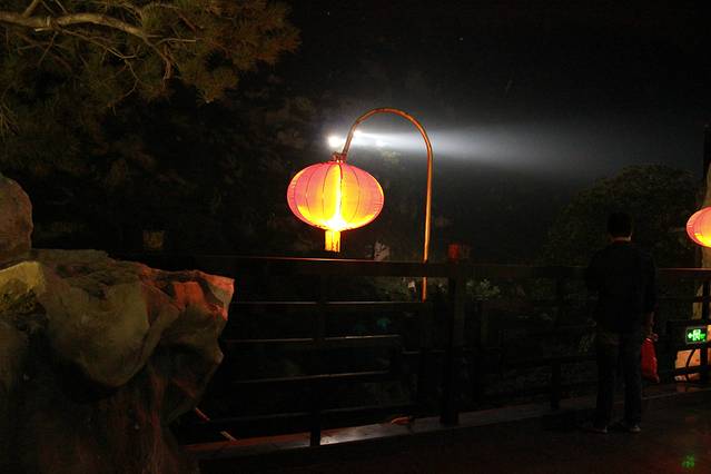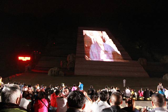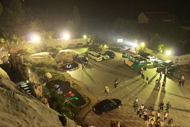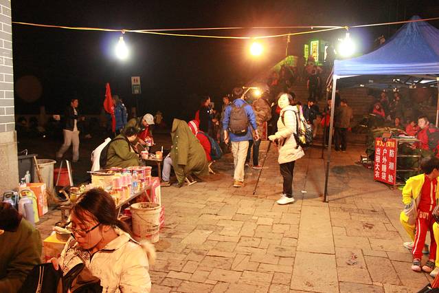 抵达封禅大典演出地天烛峰脚下,夜看演出的人特别的多