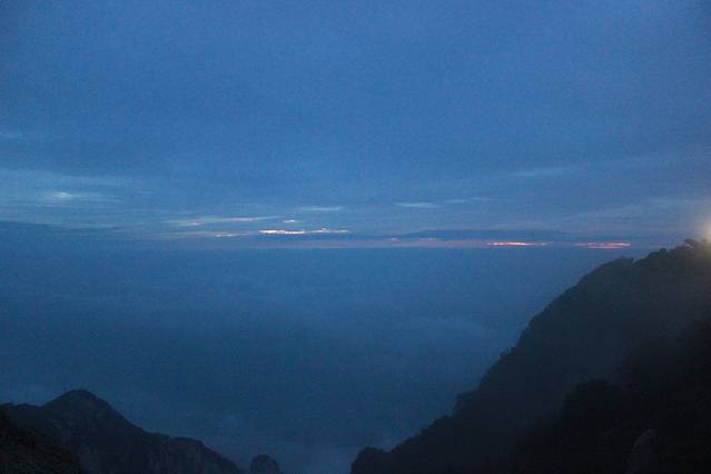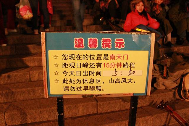 被饭店的人叫醒,说起来看日出了,因为南天门-玉皇顶还是有30分钟的路程的,所以睁开睡眼朦胧的眼睛,穿起大衣,继续前行。。