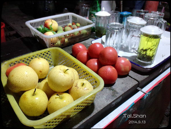 从红门沿路而上,一路上有许多的补给站,卖的新鲜的西瓜、黄瓜、西红柿等一些其他的物品,价格还算实惠。黄瓜3元一根、西瓜5元/斤..水果都很新鲜的,建议大家可以尝一下。