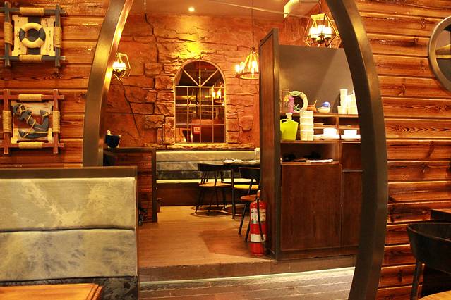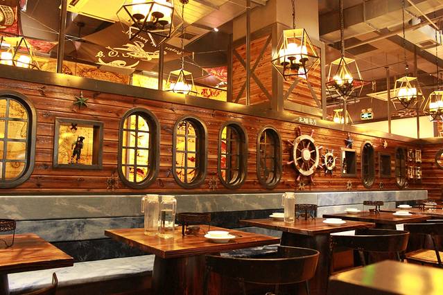 泰安的火车站就在城区,对面就是大润发,此次还没有吃饭,在火车站站台的右手边,看到新开了几家餐饮店,装修很别致,是一家主题餐厅,海盗船。刚开业,人特别多,所以这顿饭吃的有点久。等待了好久。