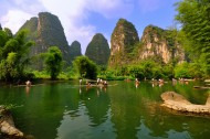 早上坐竹筏漂流了遇龙河,安安静静,有很多险滩,总体来说很满意啦