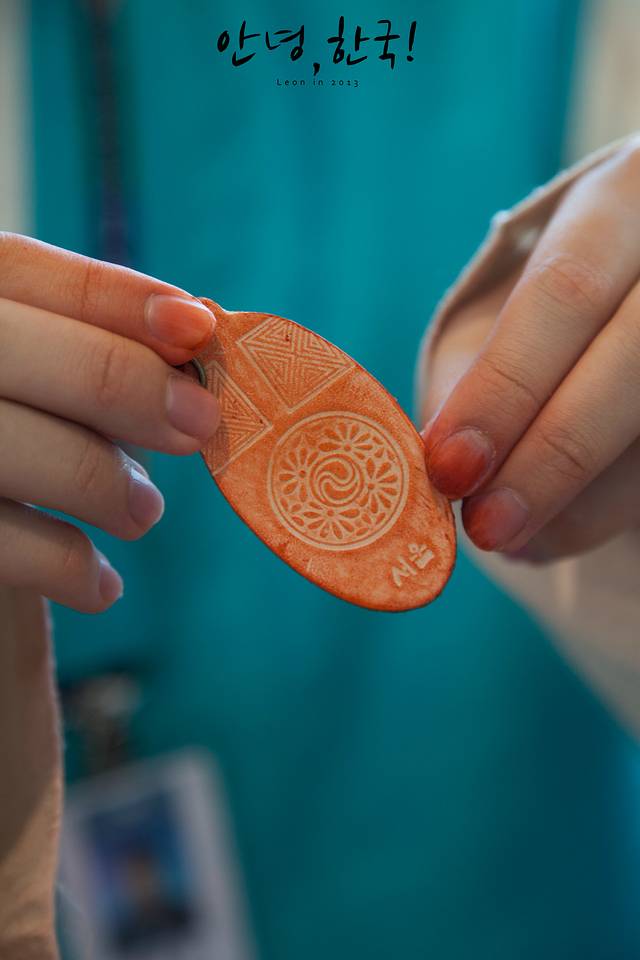传统的韩国手工哇。!! 在他们的指导下我做出一个钥匙扣!!还送了给我!!
