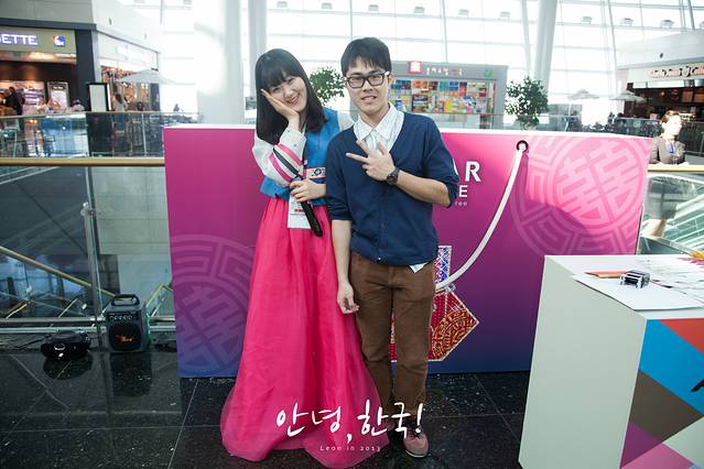 办理好退税杂七杂八的事情后,在候机楼里有一些免费的韩装试穿和工艺制作。