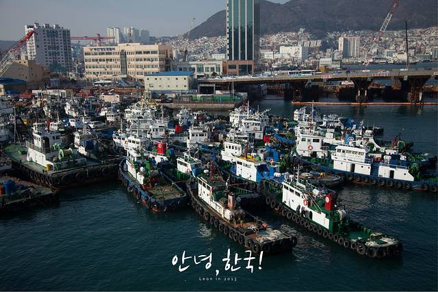 坐了2个半小时到了釜山, 一出车站温度一下子就暖和了不少。