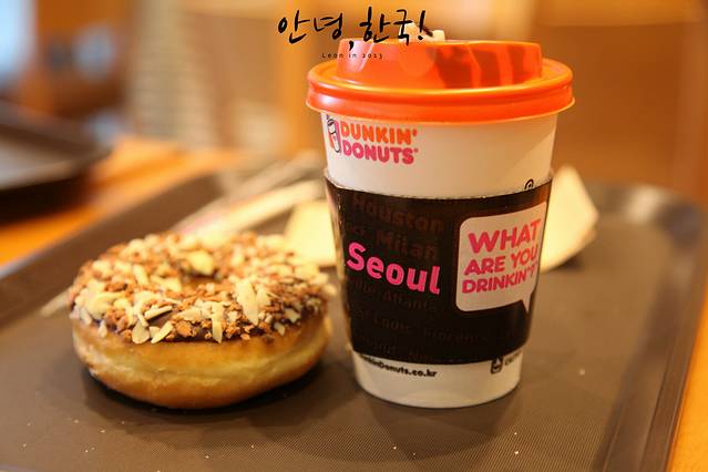 时间尚早,吃了个早餐,买杯拿铁提提神。DUNKIN DONUTS 在韩国随处可见的连锁咖啡屋。大概就像星巴克那样吧,不过里面的那些面包真的精致得不忍吃下去。