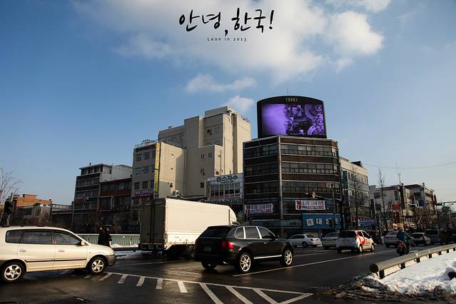 从换成了几次地铁在新论岘站出来,在滑雪一条街上一直走,见到一间7-11过马路。