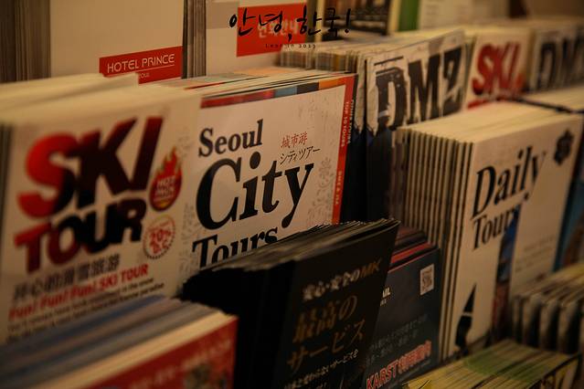 酒店里面各种各样的旅游小册子。在韩国是不怕会迷路的啊!
