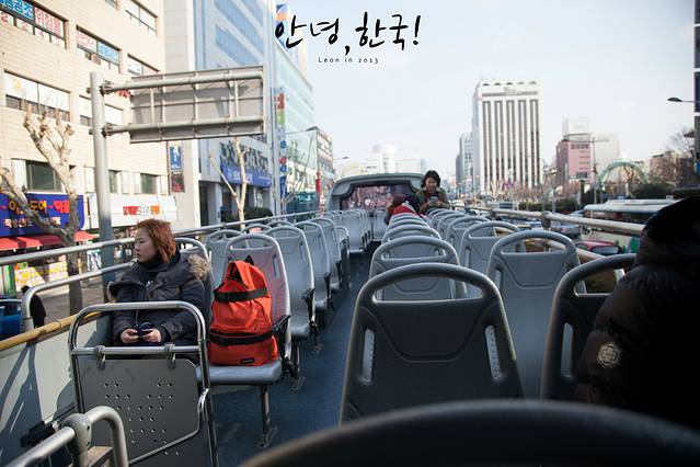 首尔观光巴士,车票10000W,可以带你把首尔江北的重要景观游过一遍,车上有中英日韩四国介绍,其实就是戴耳机听广播,想看那个景点可以按铃下车,看完之后再坐下一班,半小时一班,相当方便啦。对于我这种懒人,当然不能错过啦