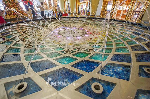 在这座巨塔的建造中,仅混凝土就使用了惊人的 70,000 立方米,钢材的消耗量也超过了 9,000 吨。酒店入口处有一座椭圆形喷水池,20,000升水的恢弘气势与喷发的火焰交相辉映,上演了一场完美的视觉交响乐。这种独特的水与火的组合由Wet Design设计,在世界上尚属首例。