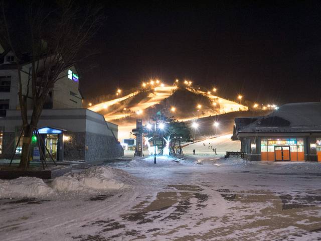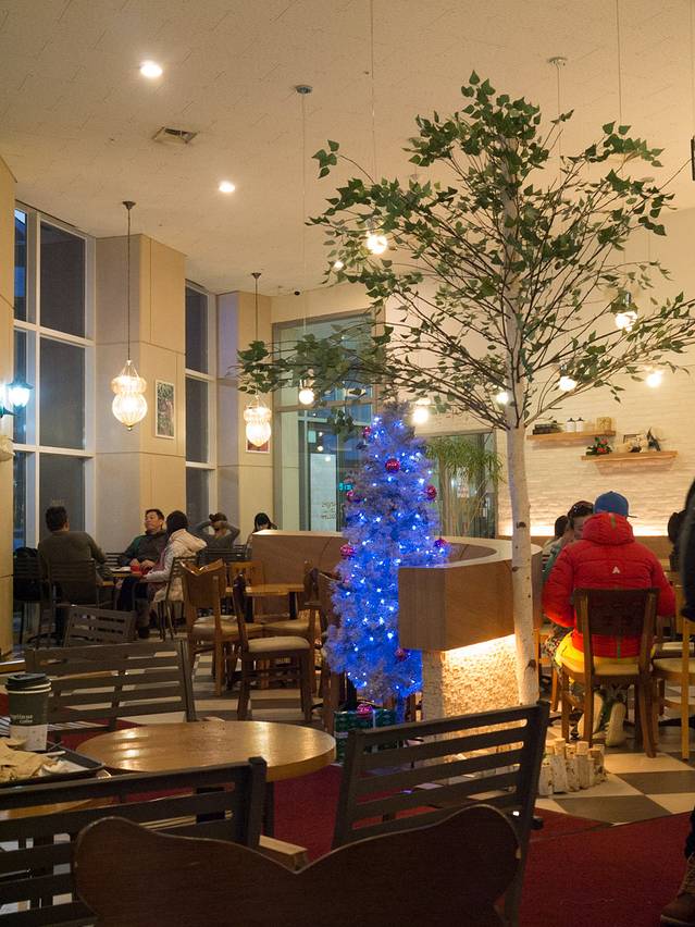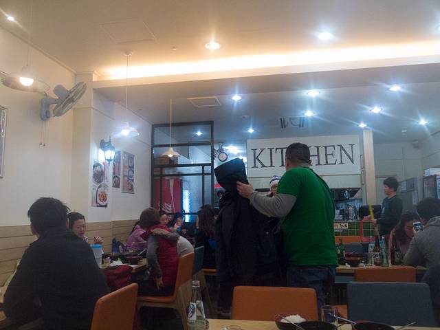 晚上在滑雪度假村的韩式饭店吃饭,这个点人还很多哟。。