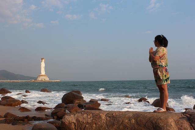 景区内的海边,面朝大海,诚心许愿。