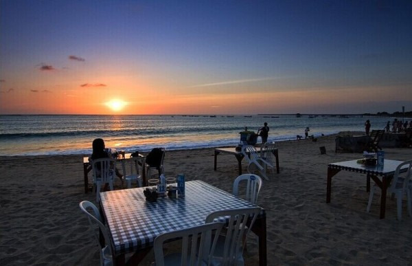 到了金巴兰海滩的时候刚好落日