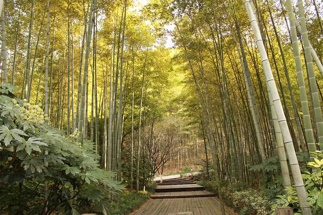 景区主要分为2个线路的部分,前往熊猫馆的话一定得乘坐地轨车,第一次见到这样的车子,很新颖。 另一线路是主要观景最佳,徒步上去,我们已经来不及了,索道上去的话最多上去又下来,于是没有选择上去,只是徒步走了一点点地方,越往山里去,温度越低了,置身于竹海里,放慢脚步,呼吸天然的负离子,空气真的特别的清新,处在这样的天然氧吧内,此刻没有工作的干扰,身心都是放松的。