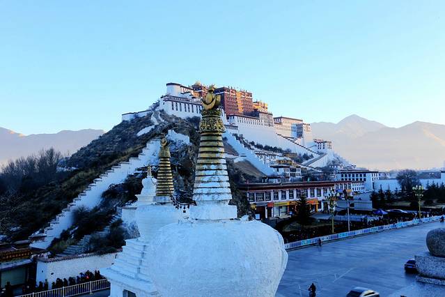 药王山实拍布达拉宫全景的最佳观景台,旺季想有个好位置需要早点去,上观景台需要付2元/人的门票