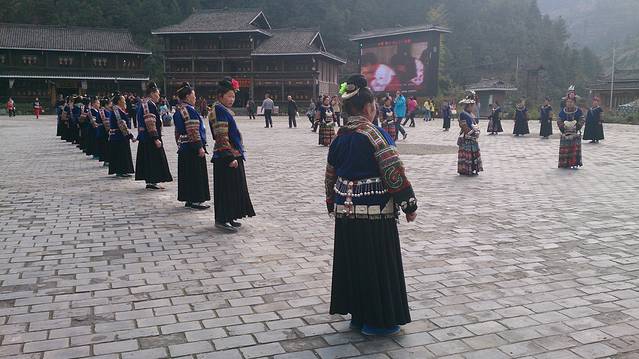 来到千户苗寨的门口,迎接游客们的苗族姑娘们