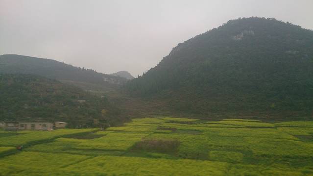第二天睡到自然醒,然后出发,打算去千户苗寨,本来打算买火车票去凯里,然后再坐车的,可是没有合适的时间,就选择了去龙洞堡汽车站,从那里出发去了凯里。一路山花烂漫,也很美,可是小伙伴是个瞌睡虫,她错过了这一路,在我怀中睡了一路。