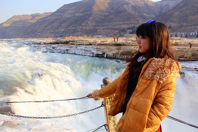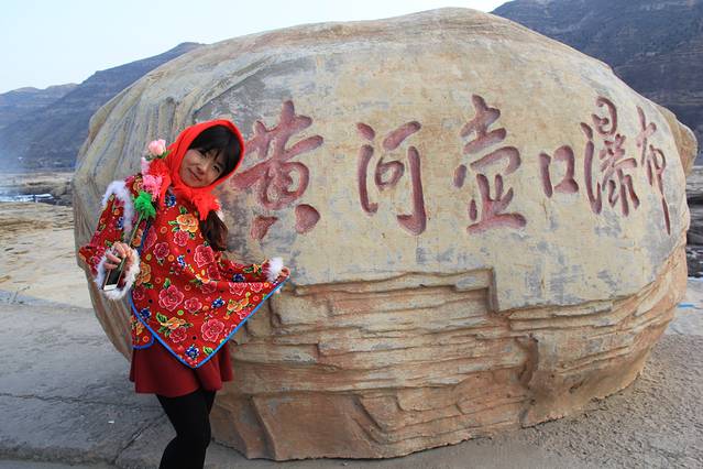 小花袄配上红头巾。壶口瀑布小婆姨这厢有礼了。