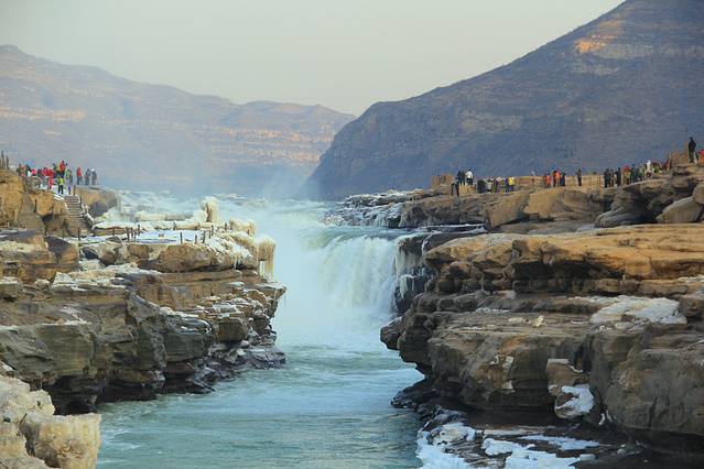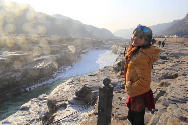 摄影家们的天堂。可能因为冬天的水土流失没那么严重导致黄河水不再是黄色的,而是呈现出绿莹莹的奇特画面。