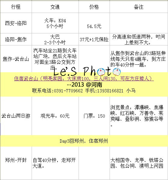 PS.云台山的旅游专线,建议大家提前打电话咨询发车时间,貌似会有变化。