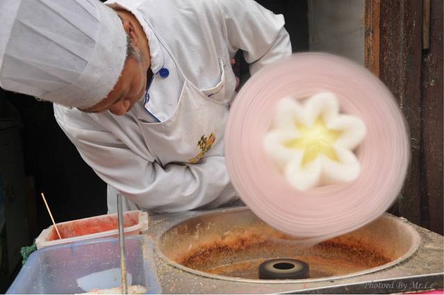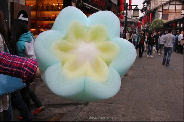 第一次见到这样的棉花糖,三块到十块不等,我们买了一个五块的。