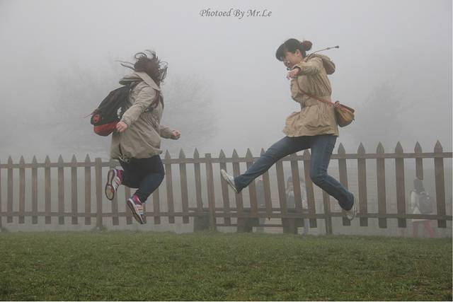 由于第一天在重庆市内,还挺热的,就想着第二天也不会很冷,所以我们都是穿着衬衣带的薄外套。结果,一到仙女山,就开始大雾,还有毛毛雨,再看当地的人穿的都是棉衣棉鞋,哇哇哇哇,冻死人啦