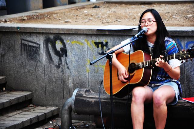 旁边就是汝矣岛公园,有很多周围公司的职员中午饭后来散步,还有慢跑锻炼的,骑车的。