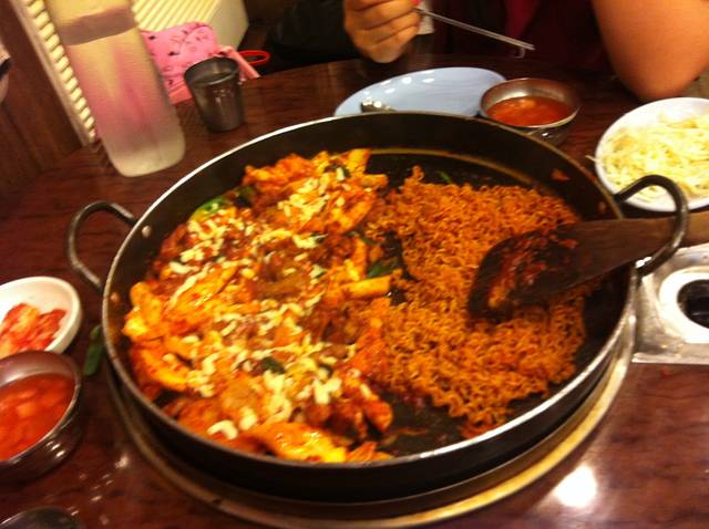 乐天负一楼的海鲜拉面,我觉得就是我们前一天晚上自己煮的海鲜方便面+3只海虹+1只大虾~不过很好吃