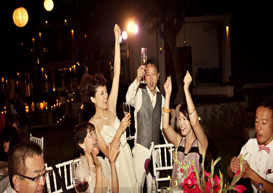 整个晚宴进行到到晚上蛮晚了,但是有工作人员一直陪着我们到最后。为我们忙前忙后,心里有点不好意思很感激。我也把做好的视频在国内的婚礼酒店播放出来了,亲友看了都觉得很好很成功。