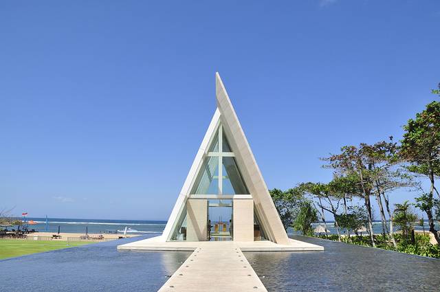 我的婚礼开始啦。因为国内的是酒店室内的婚礼,所以到了海外我们就选择了在海边结婚。其实我有看到很多教堂在海边的。想在巴厘岛结婚的朋友可以参考教堂也不错。这是我住的港丽酒店拍到的无限教堂图片哦,觉得也是美美的。
