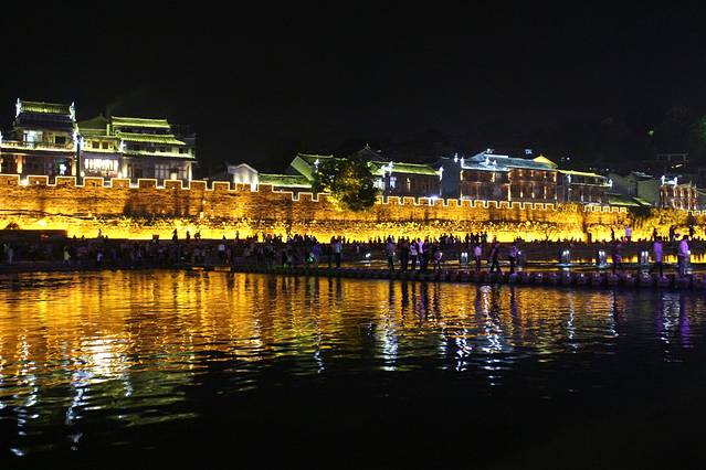 在凤凰的大街小港闲着逛着,直到夜幕降临.沱江边上的酒吧音乐泛起.这,群体,正是把凤凰陷入于激情中的载体.沱江边的夜景很温柔,360度全方位的拍照很适合.能自己一个人静静地坐上半个夜晚,观赏这片土地的夜幕,何乐而不为呢?