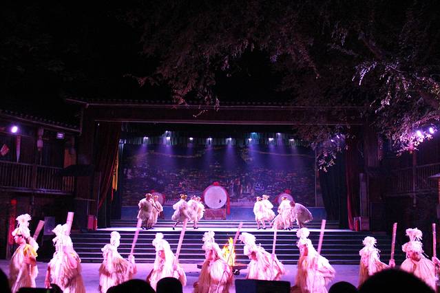 到了张家界的时候,是傍晚了.不能进山下水.入住土家印象客栈,在前台订了天门狐仙大剧场的门票.看看这个堪称世界首台大型高山峡谷实景音乐剧的震撼.¥238的B区门票,我们偷偷走到A区了,当晚还是下着大雨的,但现场还是坐满了观众.剧场所采用的高科技和艺术,即使是我这种文学盲虫也被绝服了.到了张家界,推荐一看!