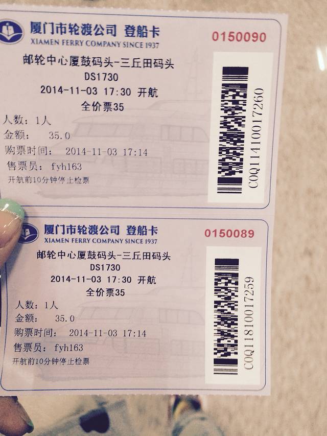 厦门到鼓浪屿的船从十月开始做了改变从以前的轮渡码头改到了专门为游客开出的码头,名字忘了大家到机场可以问一下,当地人都知道,而且船票是来回的哦,虽然从鼓浪屿回厦门我们坐了快艇,多付了点钱,好在又快又不挤,而且直接到了我们想去的中山路步行街,不觉得吃亏~