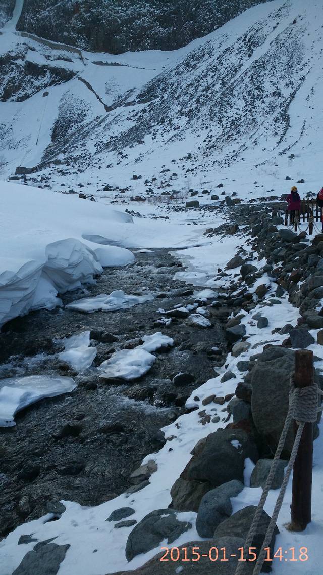 第五站:11:30—12:00 无数个温泉眼争先抢后的冒出83℃温泉水,散发出来的蒸汽凝成冰霜挂满树枝,犹如雾凇,甚是美丽!(在这可以吃温泉水煮鸡蛋,雾凇不是每次都可以见到的) 游玩后到休息室吃午饭,午饭自备干粮,休息室可以泡面,15元一桶,还算划算!