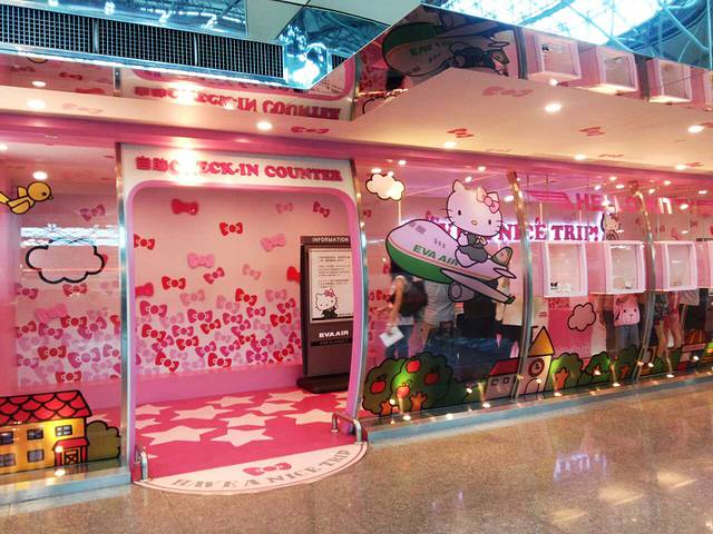 Hello Kitty的候机室,很多人都在这里拍照哦,不过我们的时间不多,要赶紧去准备登机啦