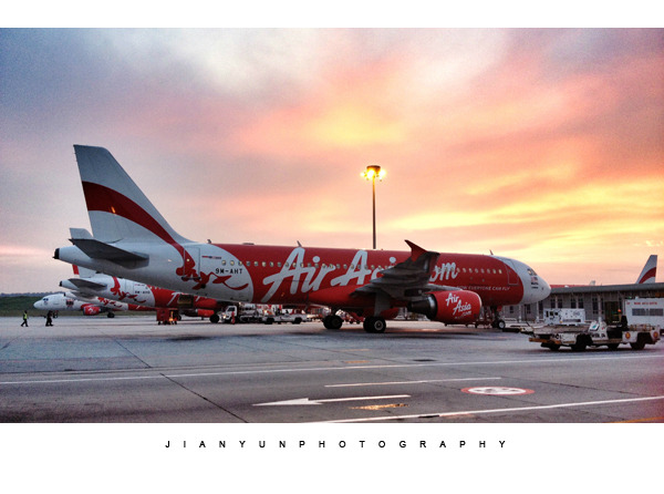 离开兰卡威时刚上飞机。停机坪上空就下起了大雨。